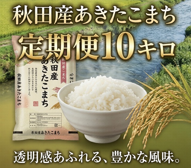令和7年 秋田産あきたこまち新米 ― 10kg 定期便(毎月お届け) ― 職人の技を支える、安定供給の一膳 秋田の豊かな大地が育てた令和7年産あきたこまち新米を、毎月10kgずつお届けする定期便です。 ふっくらと艶やかに炊き上がる粒立ち、上品な甘み、ほどよい粘り。 料理の完成度を左右する“米の質”を、いつでも変わらず最高の状態でお使いいただけます。 ■ 仕込みのブレをなくす、安定した品質 契約農家が丁寧に育てた均質な粒ぞろい。 寿司のシャリ、丼、和食のご飯物まで、毎日の仕込みで味がぶれない安定感が、プロの現場を支えます。 ■ 料理の味を引き立てる、繊細で上品な甘み 出汁の旨み、魚の香り、旬の食材の味わいを邪魔しない控えめな甘さ。 料理人の技を引き立て、料理全体の完成度を底上げします。 ■ 必要な量を、必要なタイミングで 毎月10kgを定期的にお届けすることで、在庫管理の手間を軽減。 鮮度の高い新米を常に使えるため、品質と効率の両立が可能になります。 --- 一流の味づくりを支える、信頼の定期便。 秋田産あきたこまち新米を、毎日の仕込みにお役立てください。