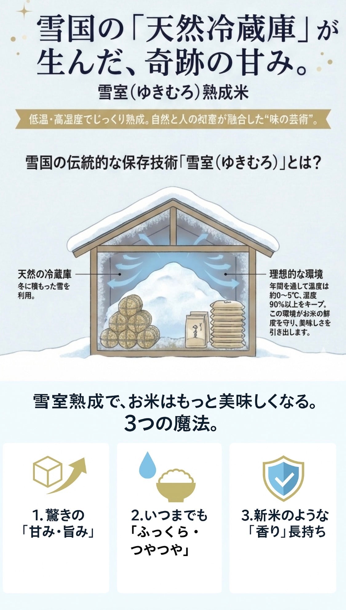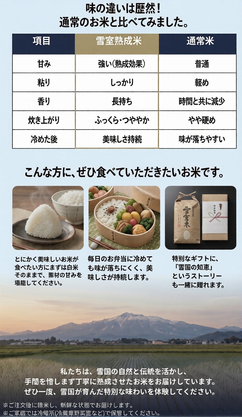 雪室熟成、自然の旨み凝縮