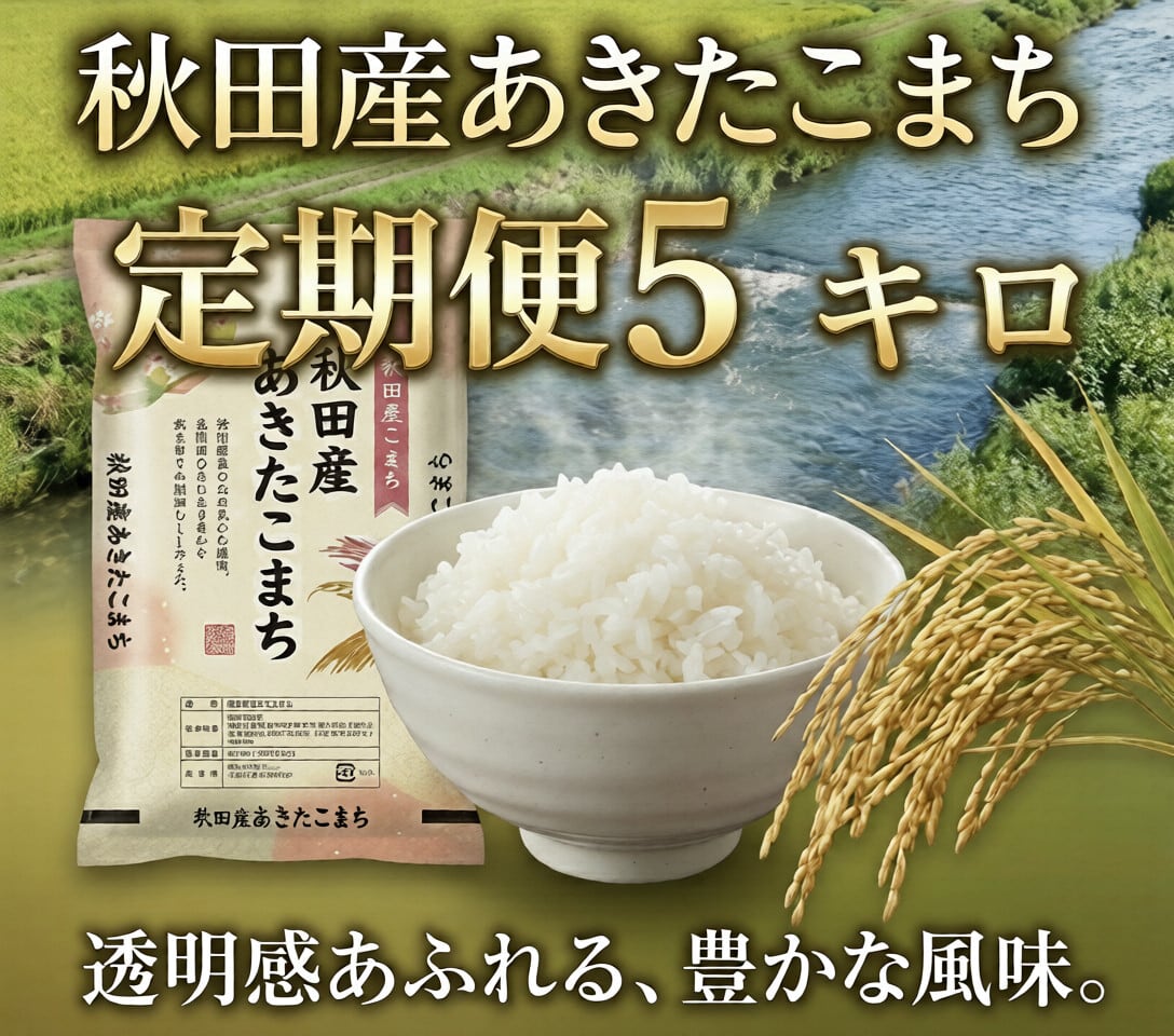 秋田の豊かな大地が育てた令和7年産あきたこまち新米を、毎月5kgずつお届けする定期便です。